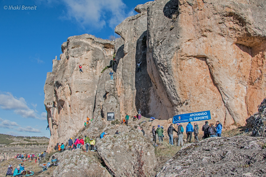Acompañados del viento y del sol, todos los fanáticos disfrutamos de una auténtica fiesta de la escalada, la competición ‘Memorial Pedro Beneit’, un evento de escalada deportiva realizado en el sector ‘Gena’, organizado por el Colectivo de Escaladores de Cuenca y con el apoyo de la FDMCM.