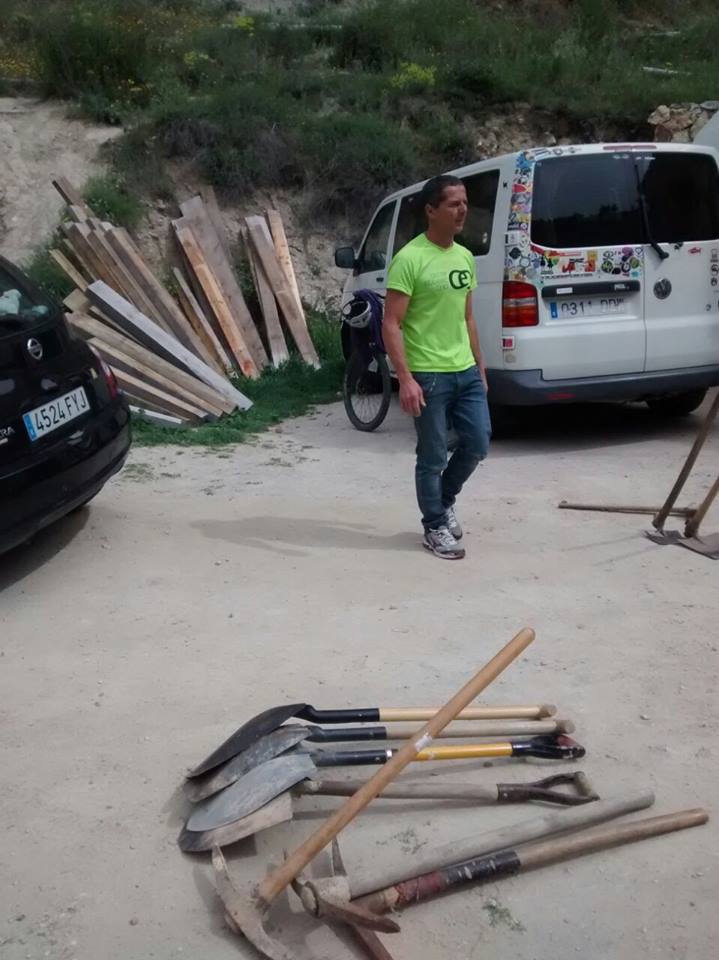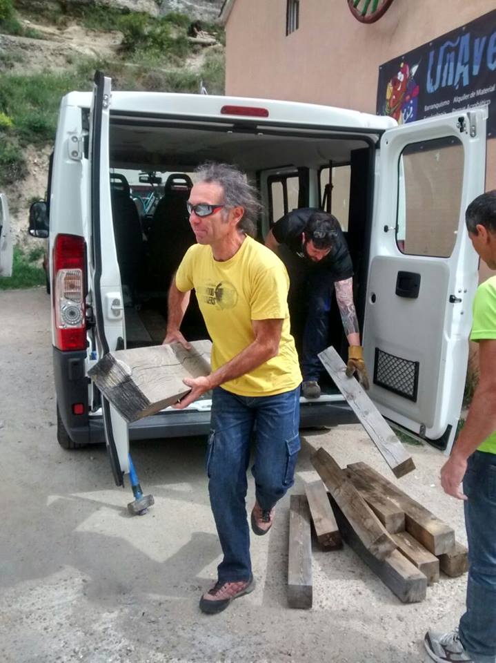 El total de el material utilizado en esta ocasión para realizar los trabajos ha sido por un lado, tablones de madera tratados, los cuales han sido donados por la Fábrica de Maderas de Cuenca tras mediación y apoyo de la FDMCM (Federación de Deportes de Montaña de Castilla la Mancha), y por otro lado un buen número de varillas de metal tipo ferralla que hemos financiado desde el Colectivo.